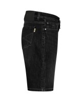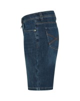 Strapazierfähige 5-Pocket-Stretch-Jeansshorts mit Gürtelschlaufen, Knopfleiste und Patch am hinteren Bund. Knöpfe und Nieten mit HAKRO Schriftzug. Stickerei auf den Gesässtaschen, am Reissverschlussuntertritt und an der Münztasche. Weicher, vorgewaschener, strapazierfähiger und elastischer Baumwoll-Polyester-Denim mit Elasthan.
