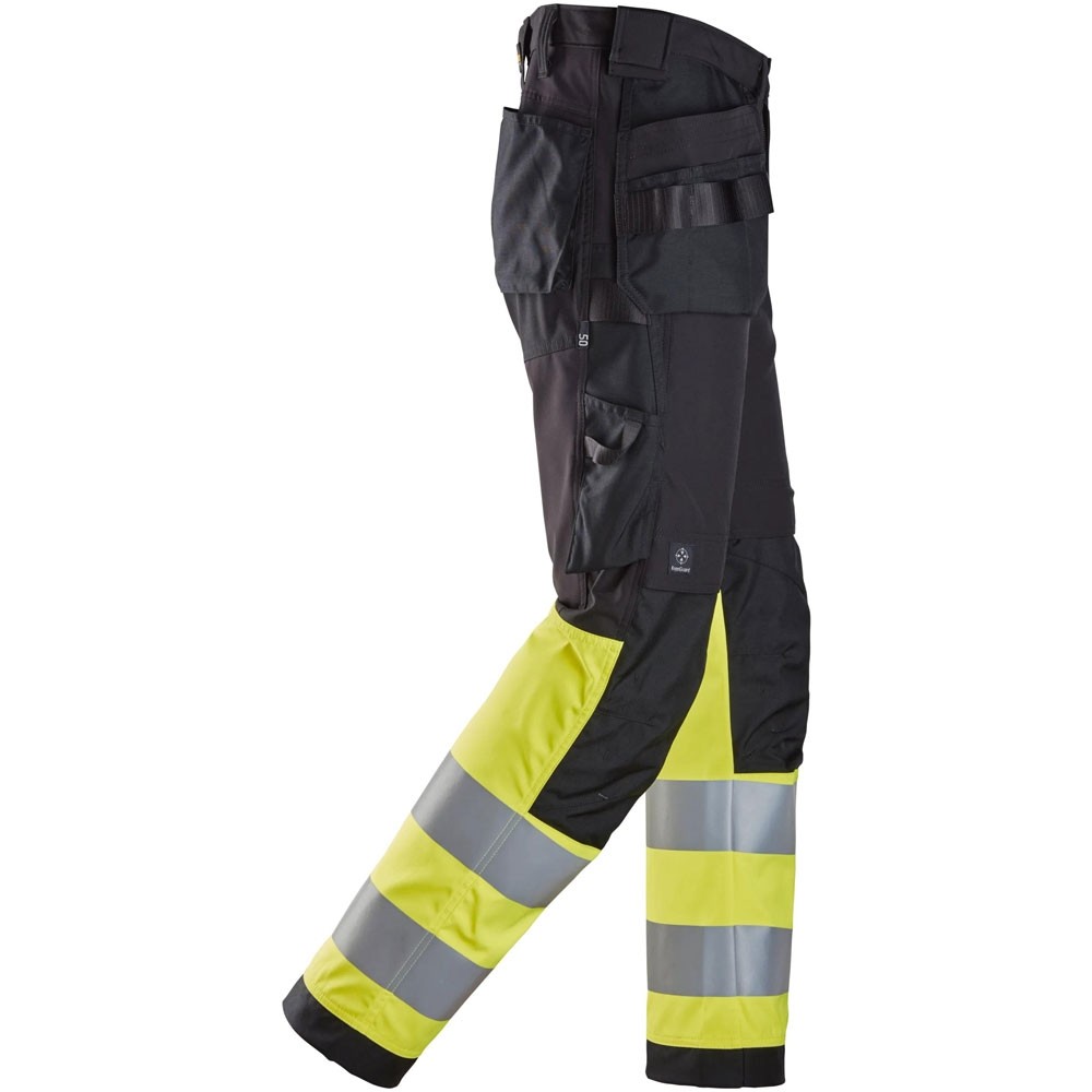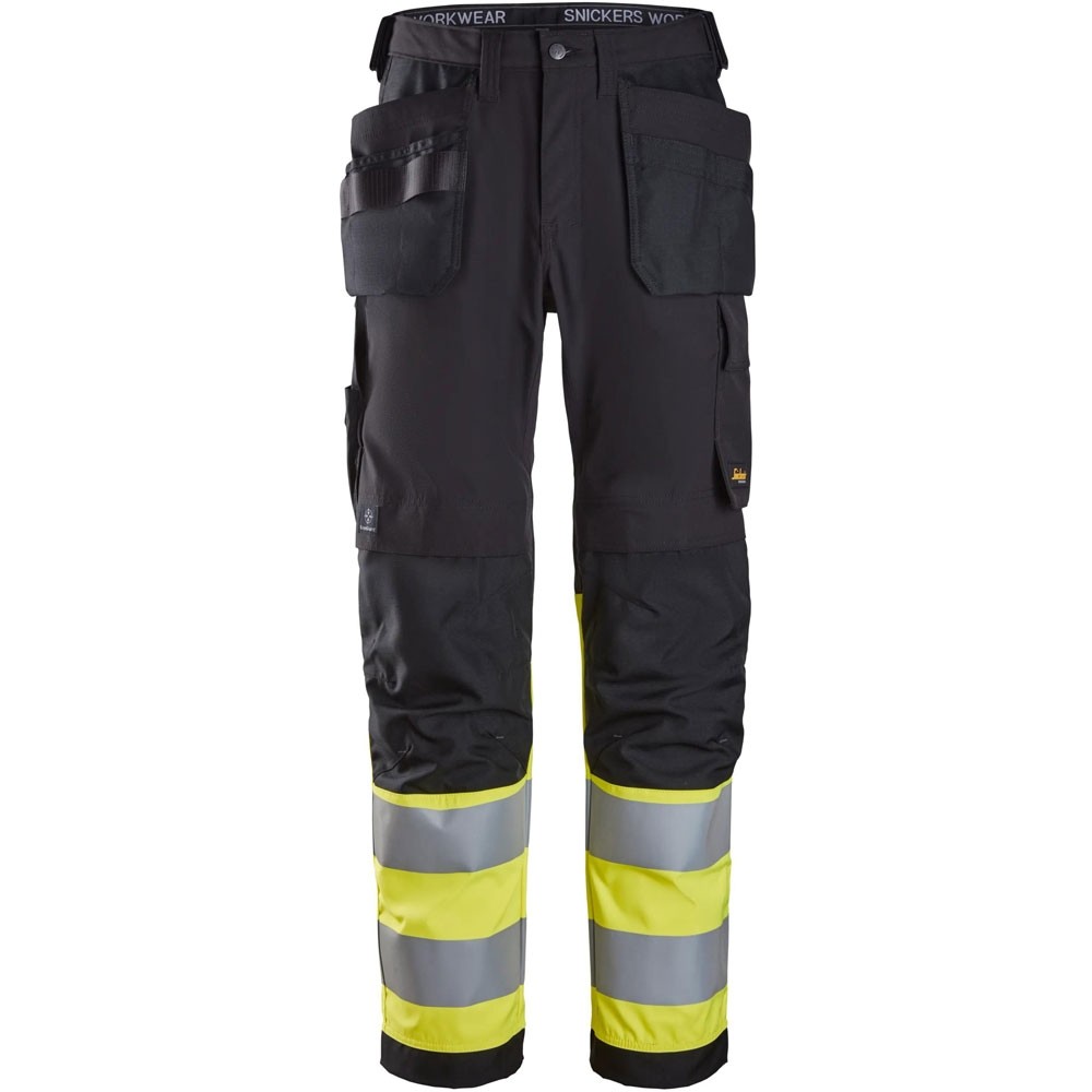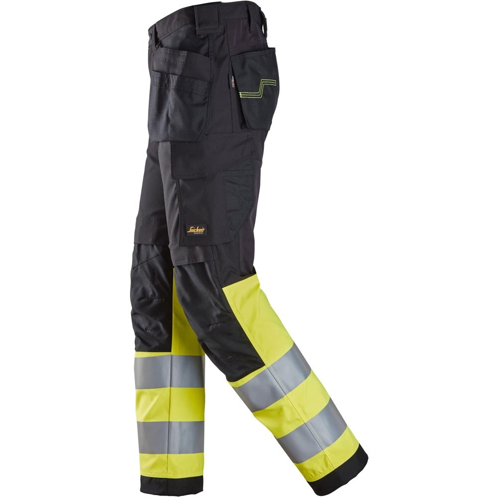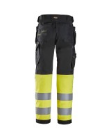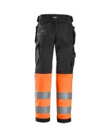 Vielseitige High-Vis-Arbeitshose mit Holstertaschen und CORDURA®-Verstärkungen. Zertifiziert nach DIN EN ISO 20471, bietet sie Strapazierfähigkeit, Sicherheit und Funktionalität auf der Baustelle.