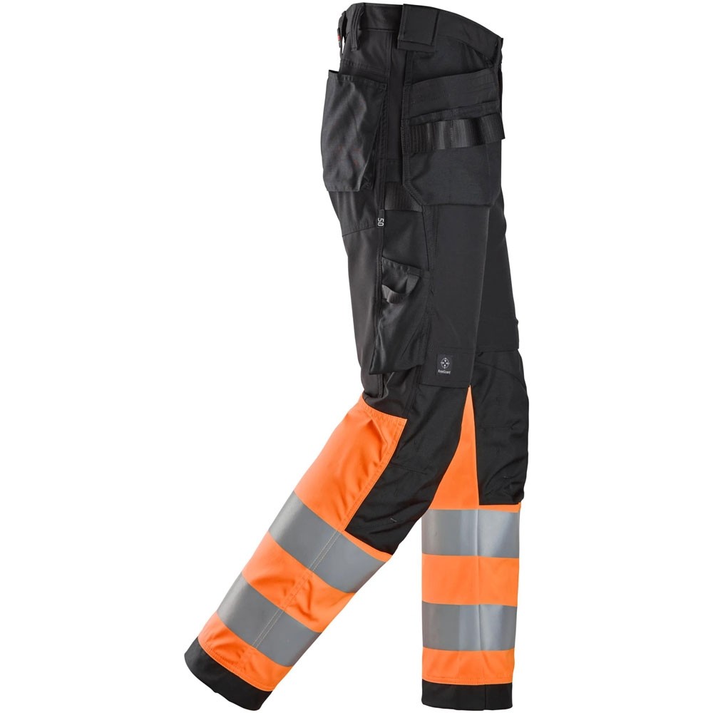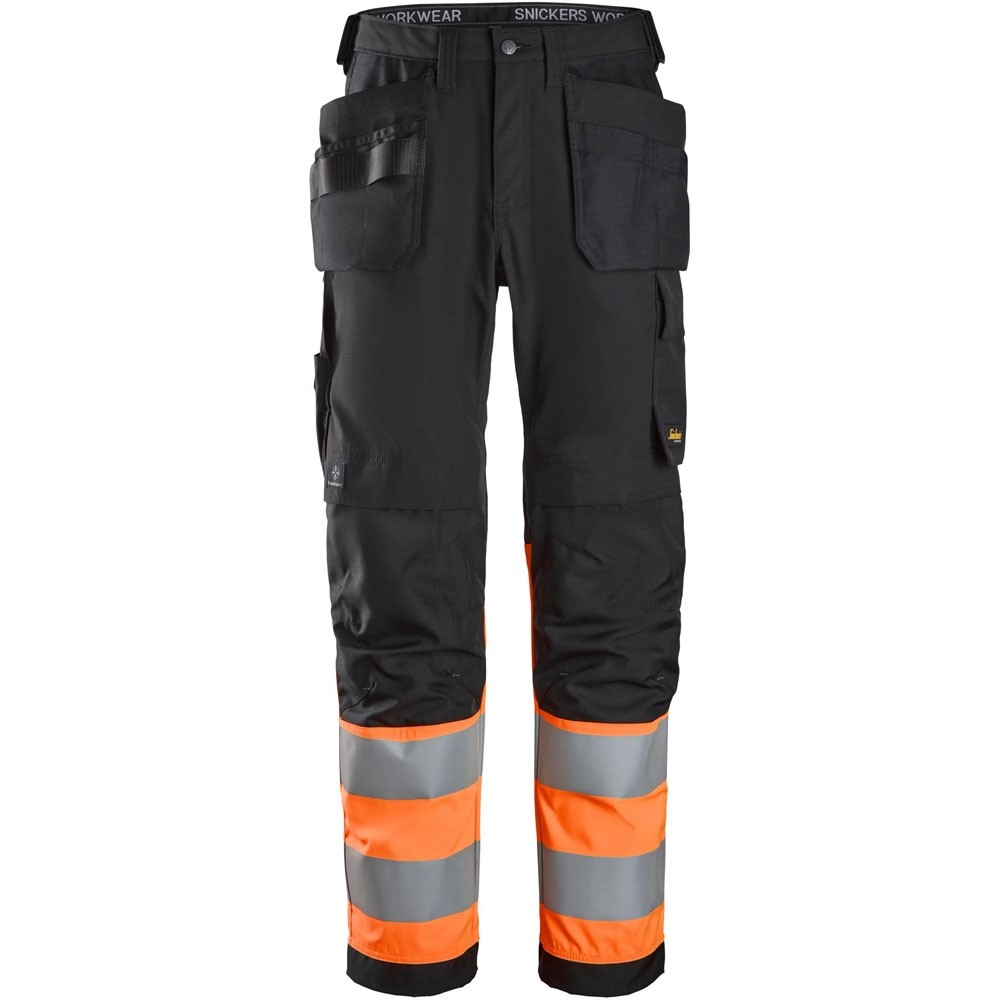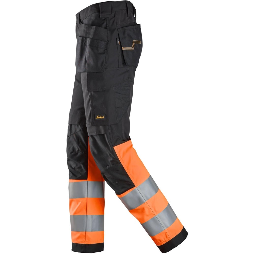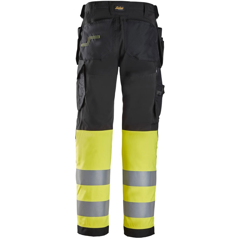 Vielseitige High-Vis-Arbeitshose mit Holstertaschen und CORDURA®-Verstärkungen. Zertifiziert nach DIN EN ISO 20471, bietet sie Strapazierfähigkeit, Sicherheit und Funktionalität auf der Baustelle.