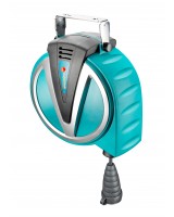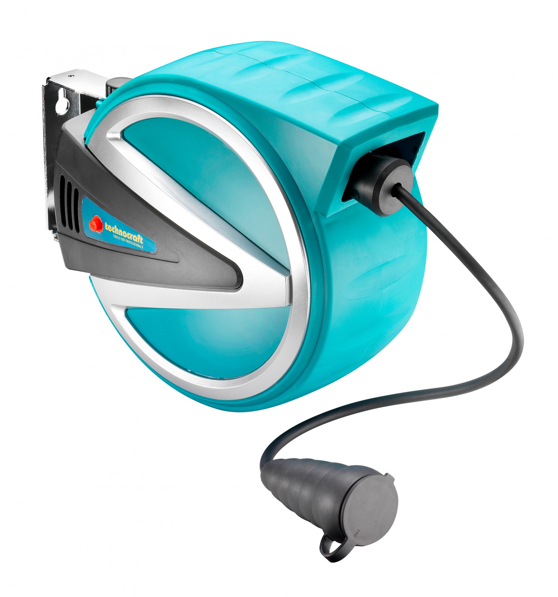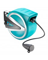 Profi-Kabelrücklaufrolle mit schlagfestem Kunststoffgehäuse und Stahl-Montagebügel. Für die Montage im Innenbereich geeignet, wie Werkstatt oder Garage.