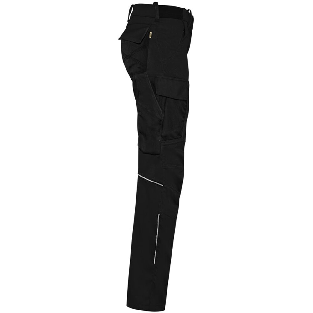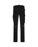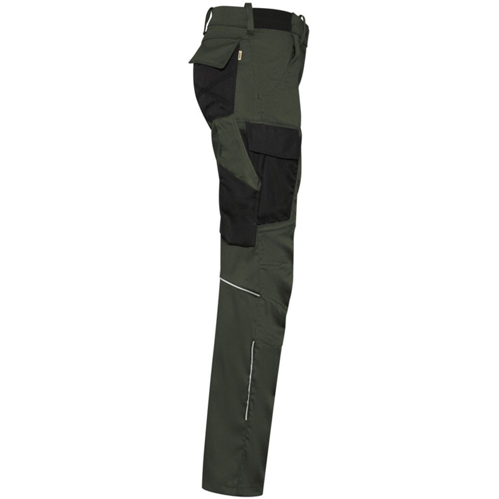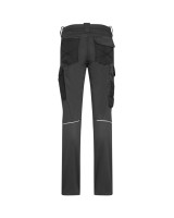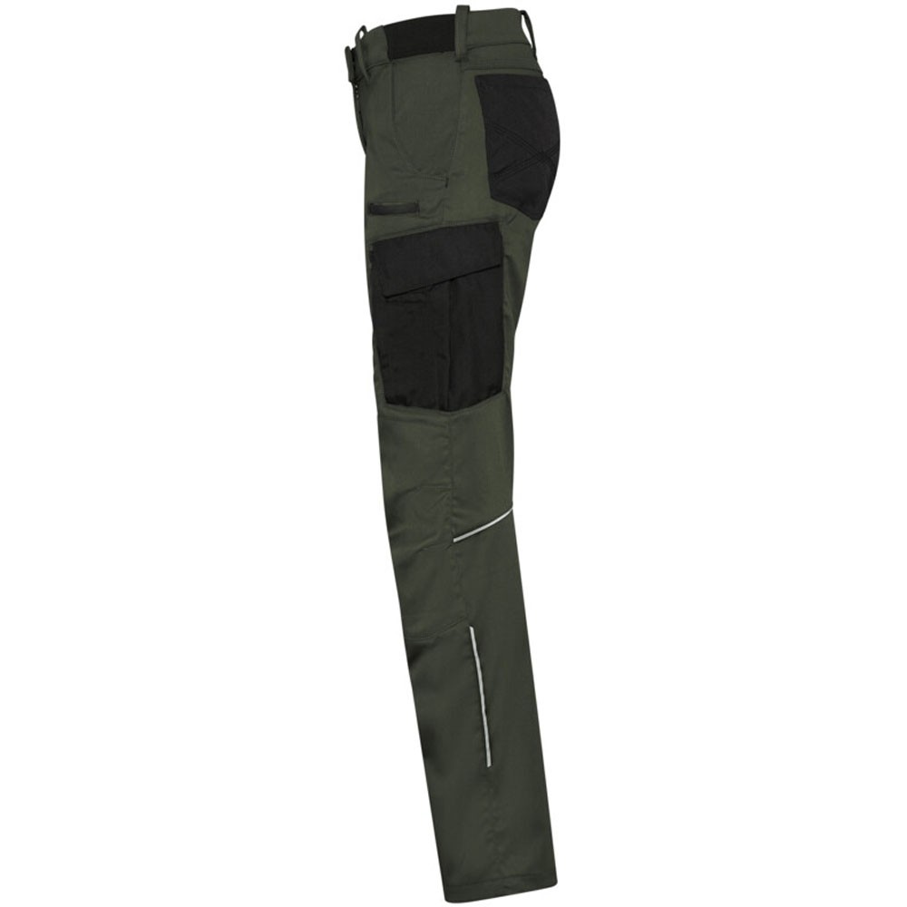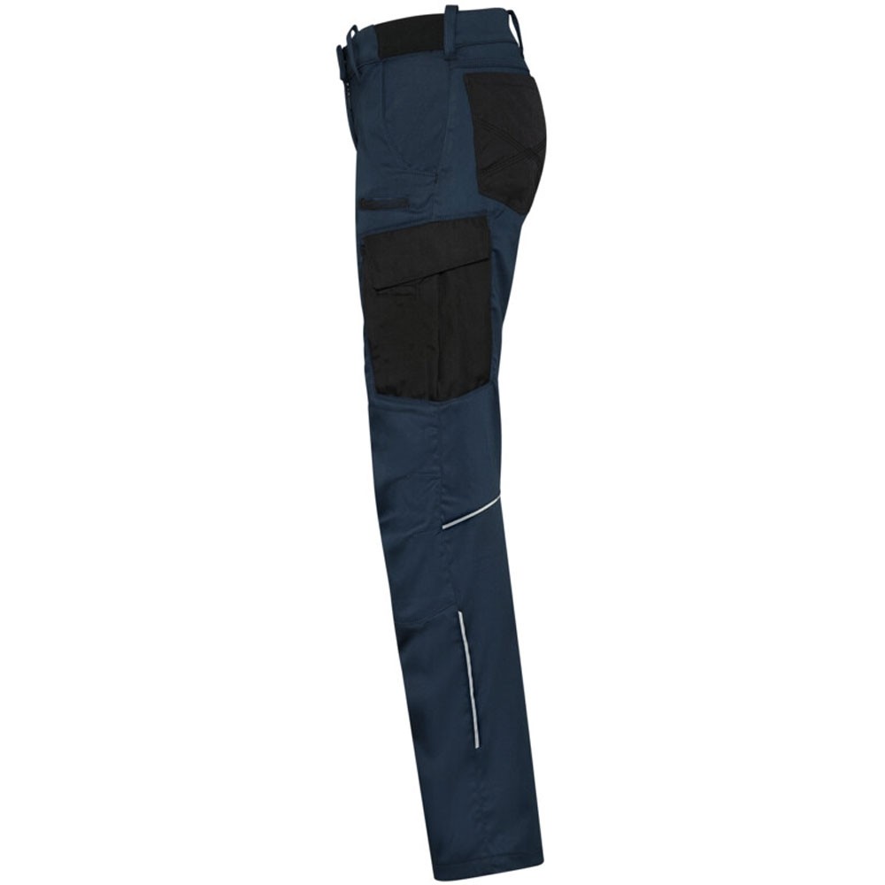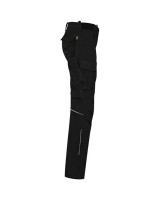Extrem strapazierfähige und funktionelle Hose mit dehnbarem Hosenbund durch robuste Strickeinsätze an den Seiten. Sicherheitsknopf, Reissverschluss, Gürtelschlaufen, eingenähte Reflexbänder und ergonomisch vorgeformte Passform. Zwei Einschubtaschen, rechts mit zusätzlicher Sicherheits-Reissverschlusstasche. Zwei Gesässtaschen mit Stickerei, rechts mit Patte und Klettverschluss. Zwei Cargotaschen mit multifunktionellen Unterteilungen, verschliessbar mit Patten und Reissverschluss an der linken Cargotasche. Aufgesetzte Zollstocktasche auf der rechten Seite. Alle aufgesetzten Taschen aus CORDURA® und alle Reissverschlüsse von YKK®. Besonders strapazierfähiger Materialmix aus Baumwolle, GRS-zertifiziertem, recyceltem Polyester und Elasthan. Verfügbar auch als Unisexmodell.