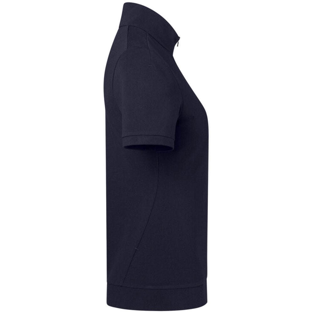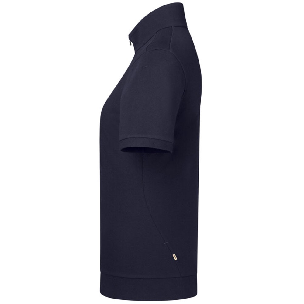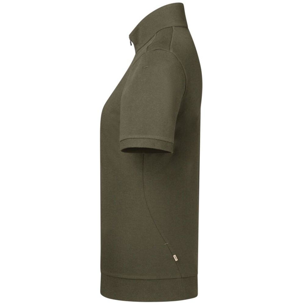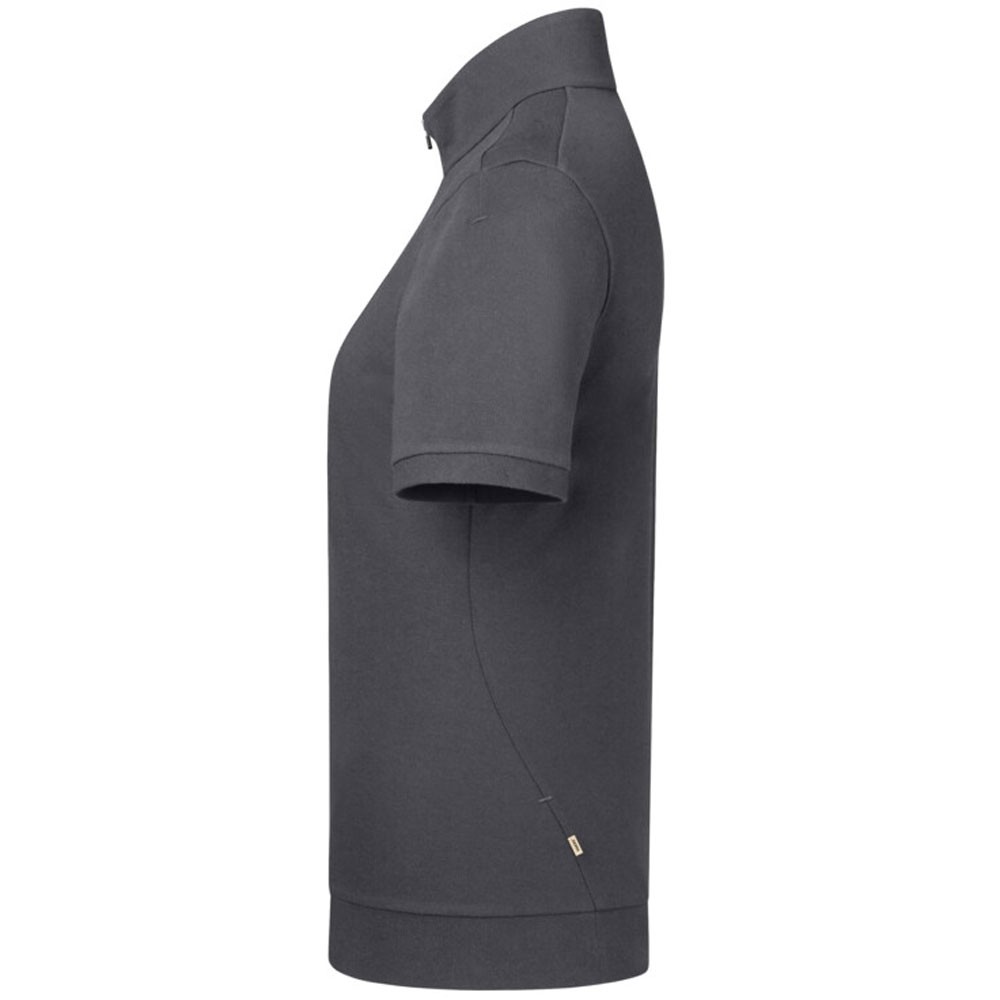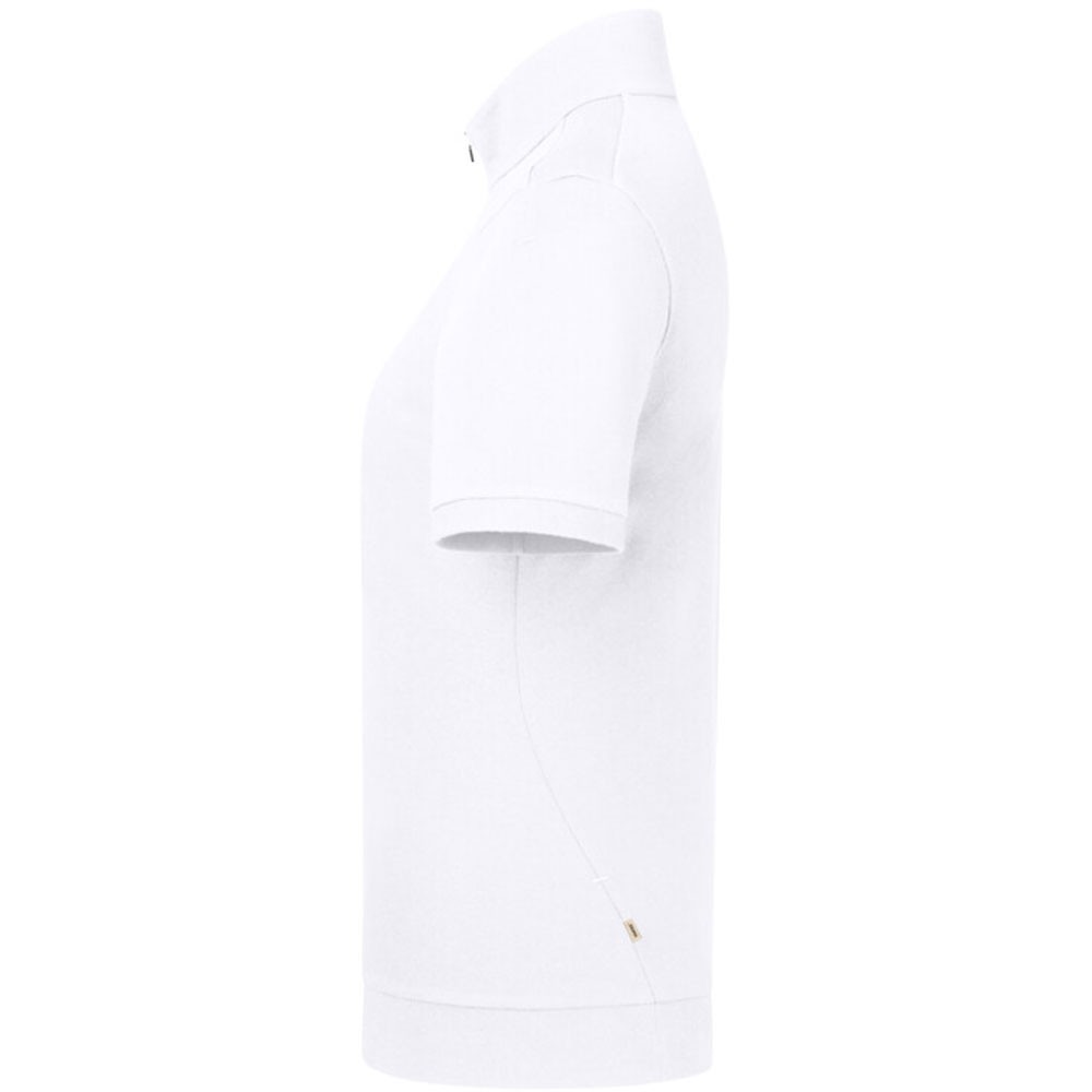 Besonders strapazierfähiges Zip-Shirt mit ergonomischer Nahtführung. Bund aus Hauptmaterial an Saum & Ärmeln. Hochwertiger Click-down-Reissverschluss von YKK® in Schwarz. Leasingkoller zur einfachen Kennzeichnung in der gewerblichen Wäscherei und Aufhängebänder im Saum. Besonders pflegeleichtes und funktionelles Piqué aus MIKRALINAR® ECO, dem HAKRO Performance-Materialmix aus Baumwolle und GRS-zertifiziertem, recyceltem Polyester. Verfügbar auch als Unisexmodell.