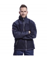 Brusttasche mit Reißverschluss. Zwei Eingrifftaschen mit Reißverschluss. Innen mit Gleitfutter.