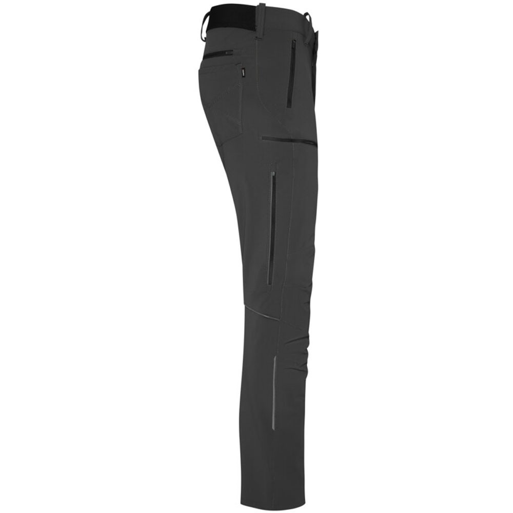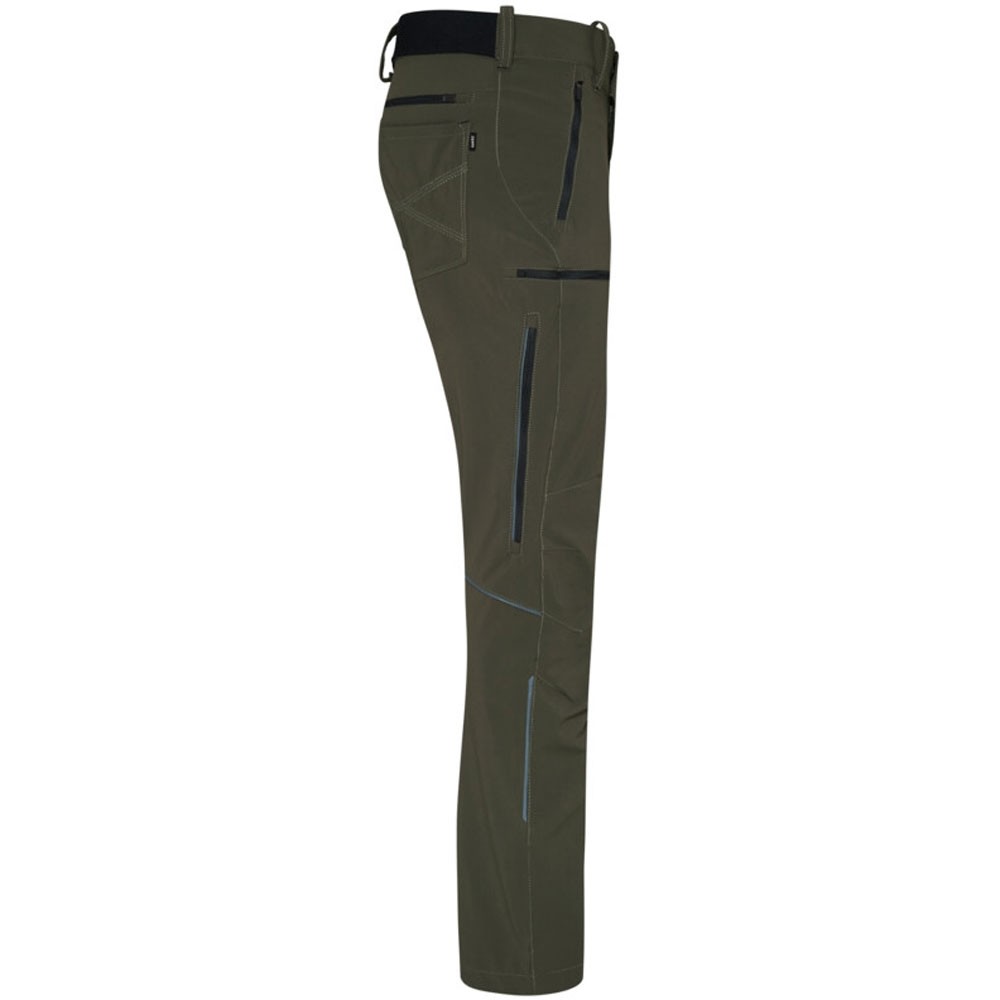 Leichte und funktionelle Hose mit dehnbarem Hosenbund durch robusten Strickeinsatz hinten. Sicherheitsknopf, Reissverschluss, Gürtelschlaufen, eingenähte Reflexbänder und ergonomisch vorgeformte Passform. Zwei Einschubtaschen mit Reissverschluss, zwei Gesässtaschen mit Stickerei und Reissverschlusstasche rechts, eine Oberschenkeltasche am rechten Bein und zwei Belüftungen, jeweils mit Reissverschluss und Reissverschlussgarage. Alle Reissverschlüsse von YKK®. Elastisches, strapazierfähiges und atmungsaktives 4-Wege-Stretchmaterial. Verfügbar auch als Damenmodell.