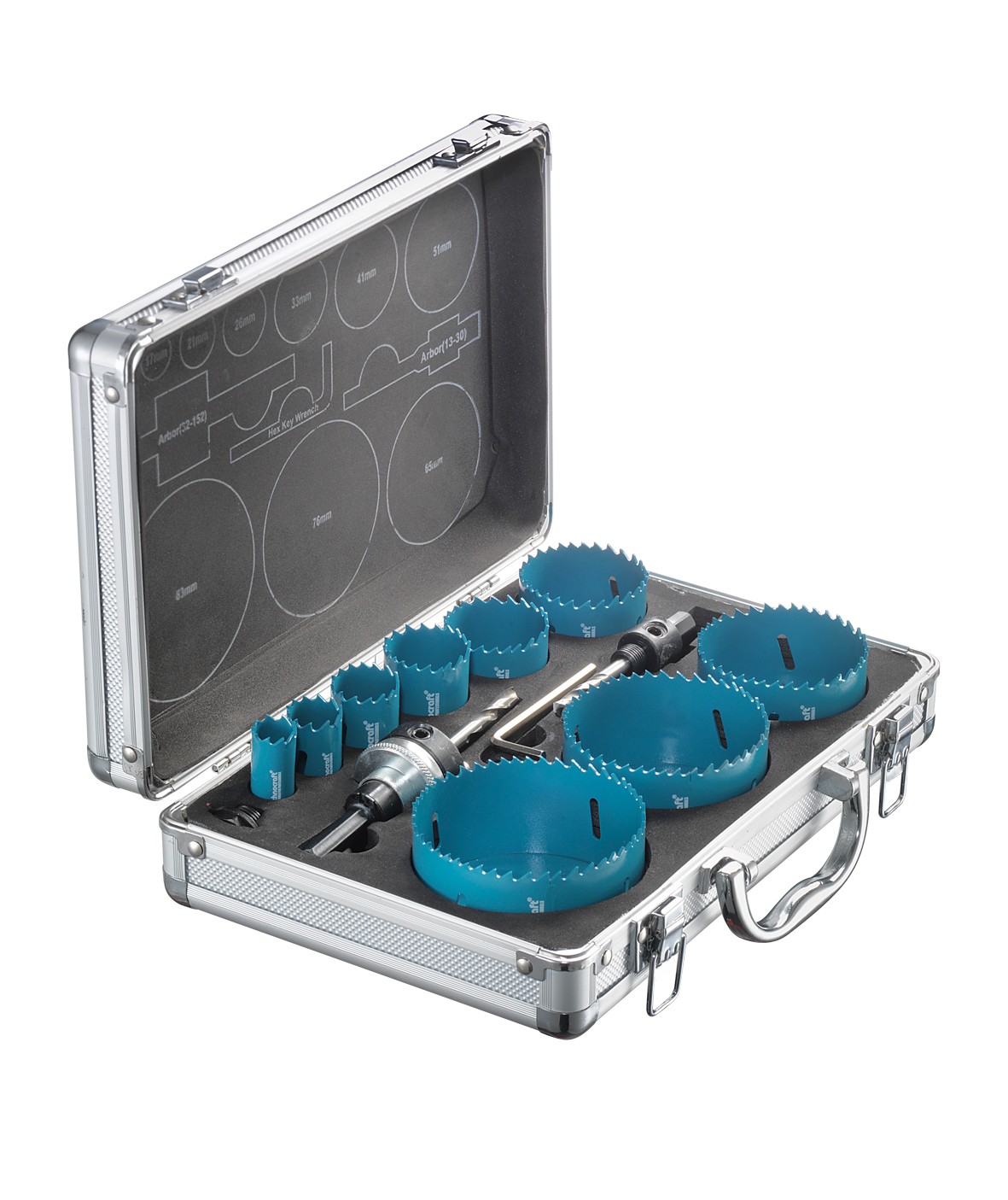 - 9 HSS-Bi-Metall Lochsägen Ø 17 / 21 / 26 / 33 / 41 / 51 / 65 / 76 / 83 mm
