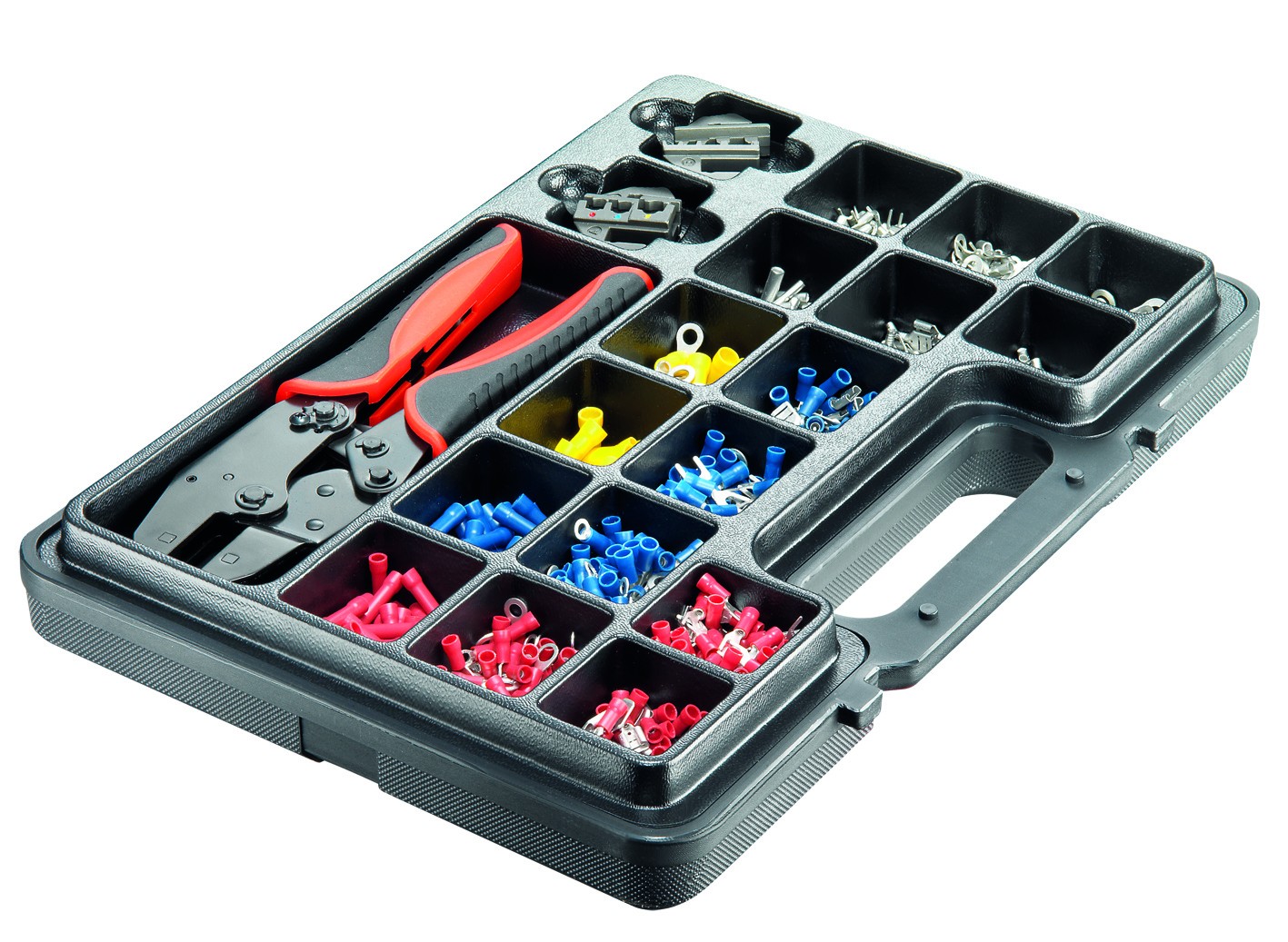 - 2 Paar auswechselbare Mundstücke: Typ "A" für isolierte Kabel / Typ "B" für unisolierte Kabel