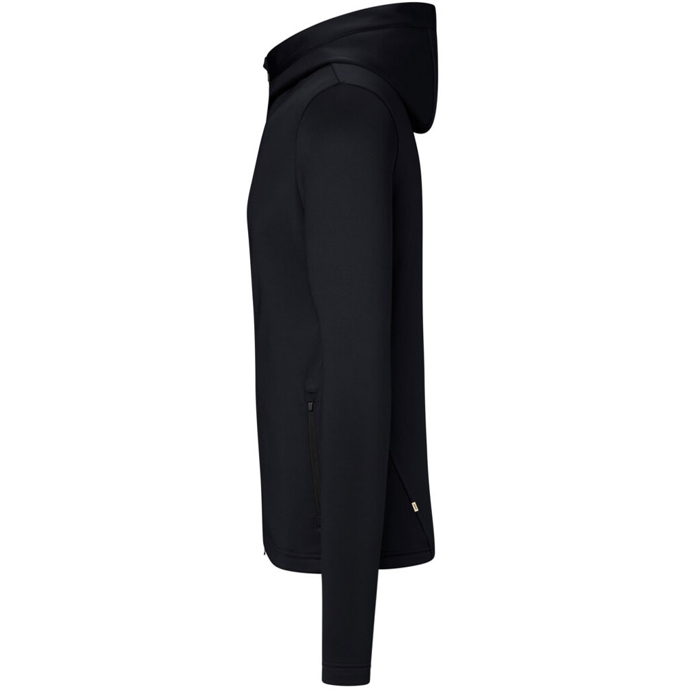 Funktionelle, sportiv geschnittene Jacke mit Zweinaht-Verarbeitung an der Kapuze. Frontreissverschluss mit Reissverschlussgarage und Einschubtaschen mit Reissverschlüssen. Alle Click-Down-Reissverschlüsse von YKK® in Schwarz. Pflegeleichtes und schnelltrocknendes Stretchmaterial aus der Funktionsfaser TRIACTIVE mit GRS-zertifiziertem, recyceltem Polyester. Angeraute Innenseite für hohe Wärmeisolation. Verfügbar auch als Damenmodell.