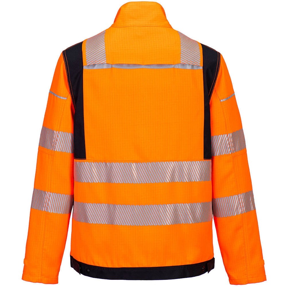 Diese moderne, zweifarbige Warnschutz-Jacke PW3 FR mit dem neuesten innovativen Konzept ist sowohl modisch als auch praktisch. Die obere Tasche bietet Platz für moderne Smartphones, und die geräumigen unteren Taschen sind mit Reißverschlüssen versehen, die für zusätzliche Sicherheit sorgen. Zu den herausragenden Merkmalen gehören segmentierte Reflexstreifen, mit Klettverschluss verstellbare Ärmelbündchen und verstärkte, doppelt genähte Nähte.