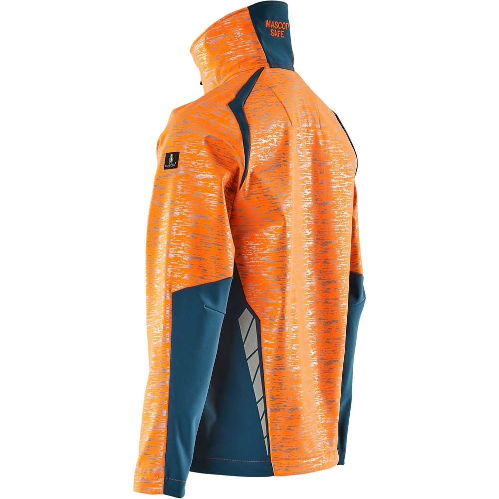 Atmungsaktiv, winddicht und wasserabweisend. Moderne, körpernahe Passform mit viel Bewegungsfreiheit. Stehkragen. Zweifarbig. Verschluss mit wasserdichtem Reissverschluss und inwendiger Wetterschutzleiste. Brusttasche mit Reißverschluss. Vordertaschen mit wasserdichten Reißverschlüssen. Innentaschen. Klettverschluss an den Handgelenken. Gummizug in der Unterkante, regulierbar. ID-Kartenhalter ist abnehmbar. Reflexeffekte