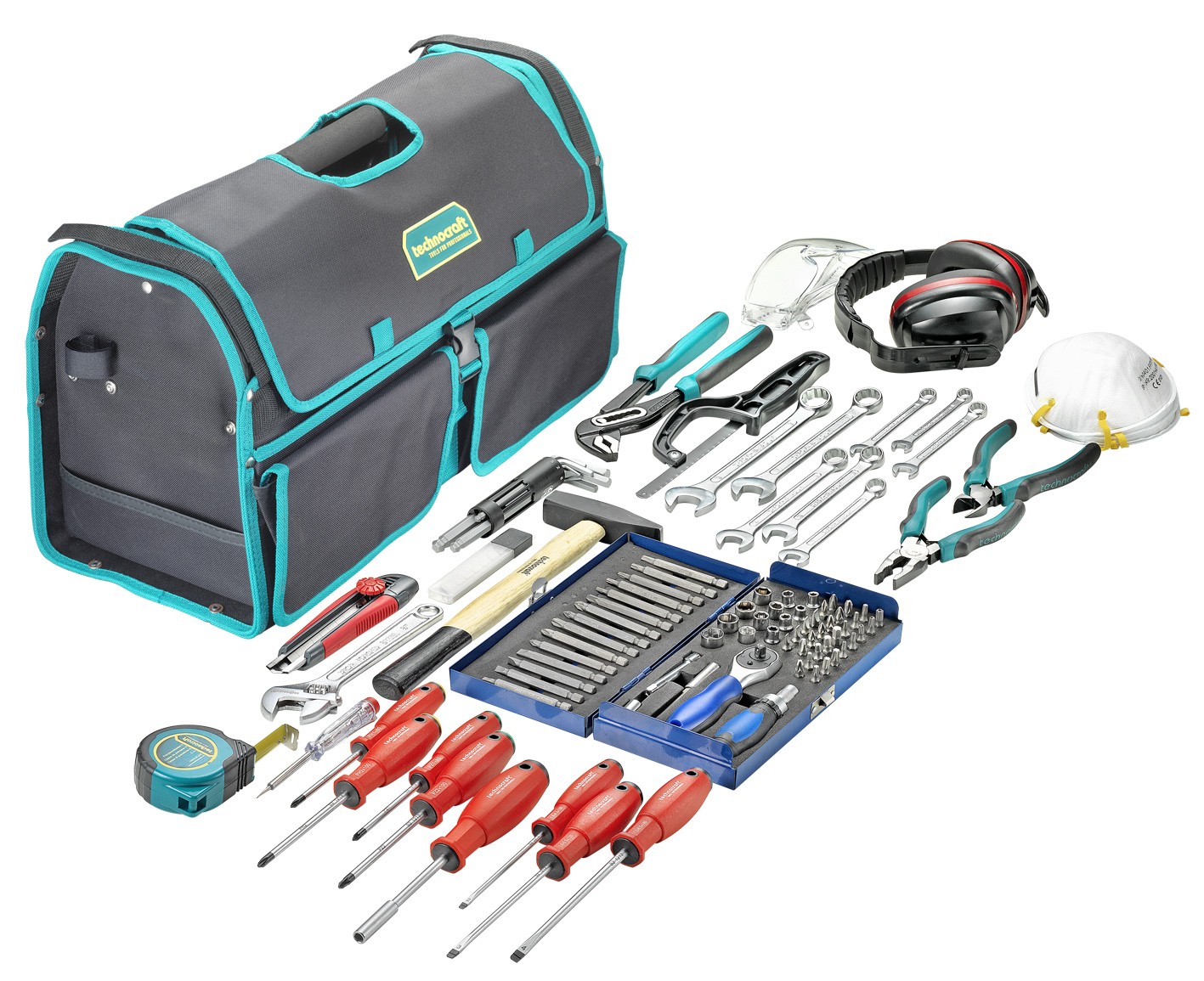 Sehr robuste und stabile Werkzeugtasche, gefüllt mit 100 Qualitätswerkzeugen. Ideal für Montage- und Servicearbeiten.
