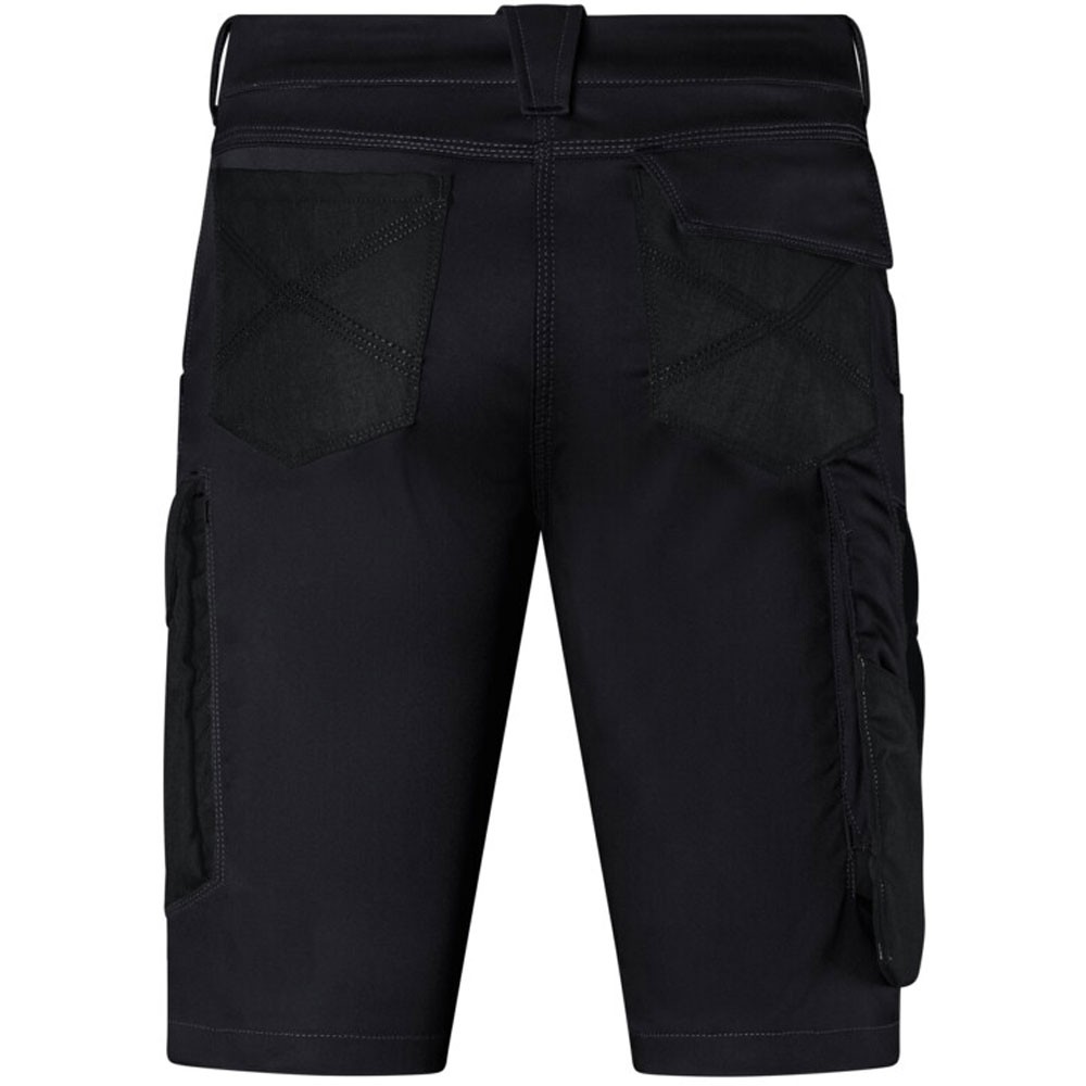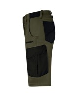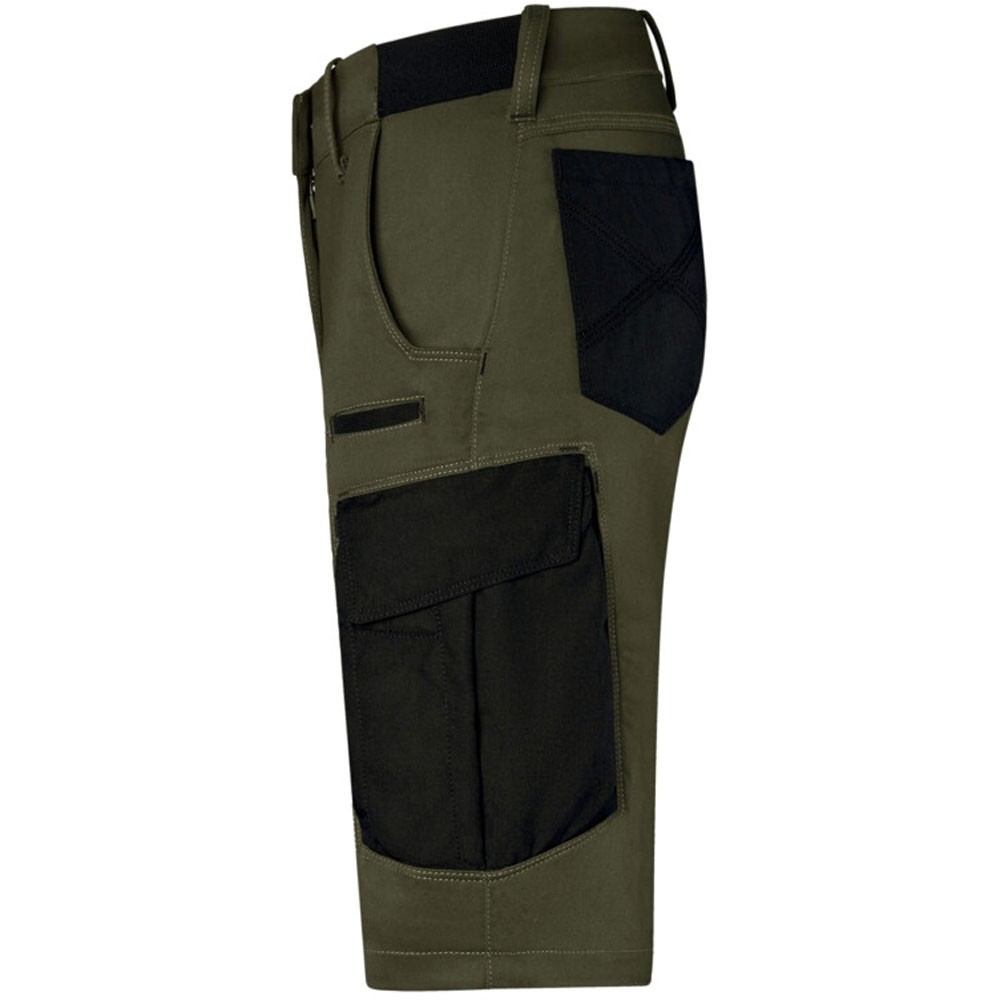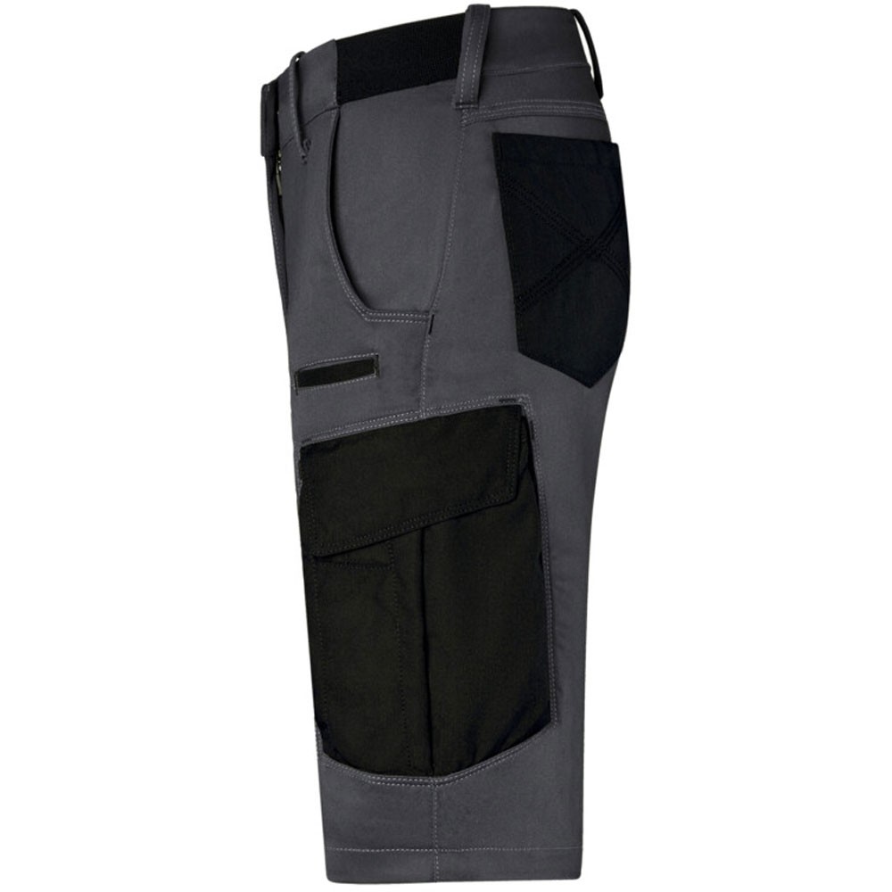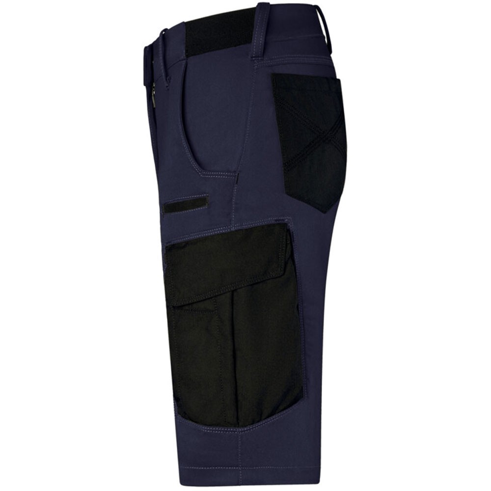 Extrem strapazierfähige und funktionelle Shorts mit dehnbarem Hosenbund durch robuste Strickeinsätze an den Seiten. Sicherheitsknopf, Reissverschluss, Gürtelschlaufen, eingenähte Reflexbänder und ergonomisch vorgeformte Passform. Zwei Einschubtaschen, rechts mit zusätzlicher Sicherheits-Reissverschlusstasche. Zwei Gesässtaschen mit Stickerei, rechts mit Patte und Klettverschluss. Zwei Cargotaschen mit multifunktionellen Unterteilungen, verschliessbar mit Patten und Reissverschlüssen. Aufgesetzte Zollstocktasche auf der rechten Seite. Alle aufgesetzten Taschen aus CORDURA® und alle Reissverschlüsse von YKK®. Besonders strapazierfähiger Materialmix aus Baumwolle, GRS-zertifiziertem, recyceltem Polyester und Elasthan.