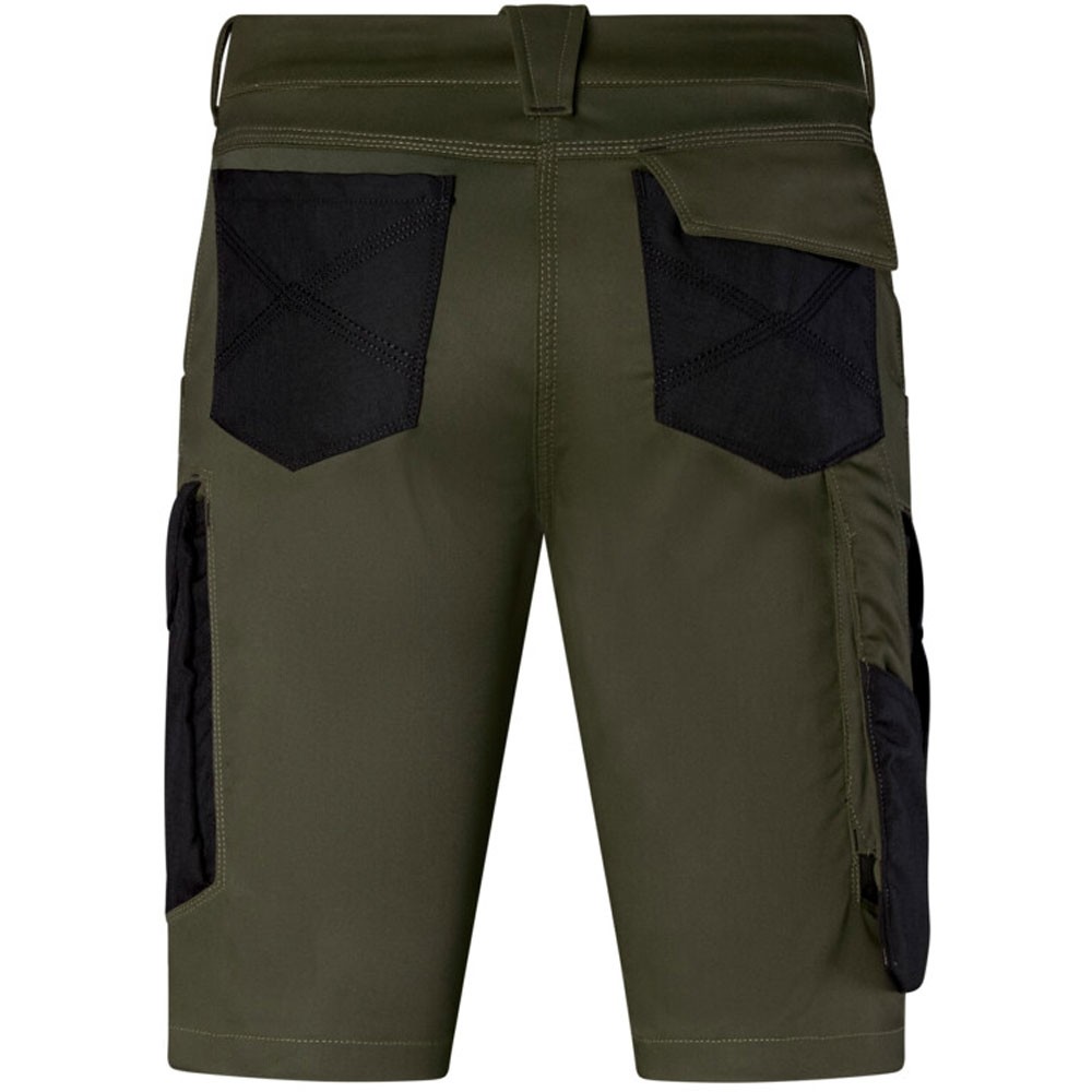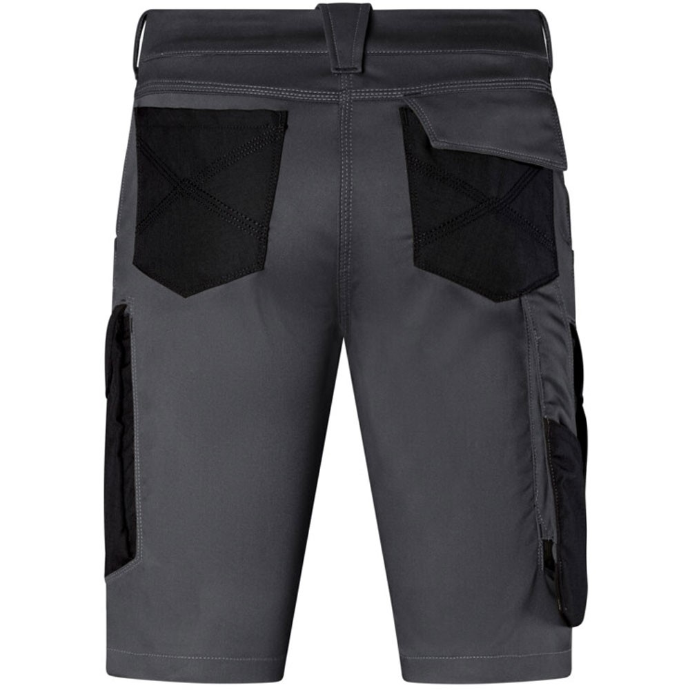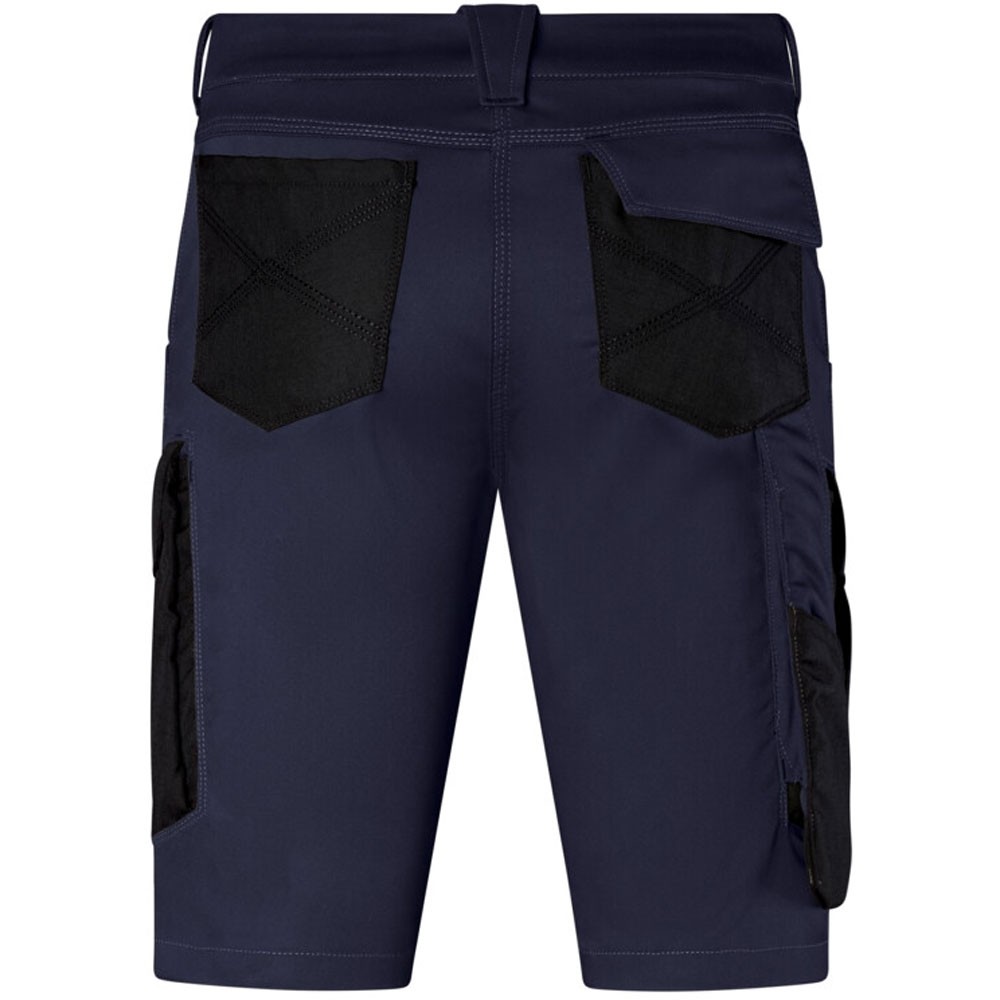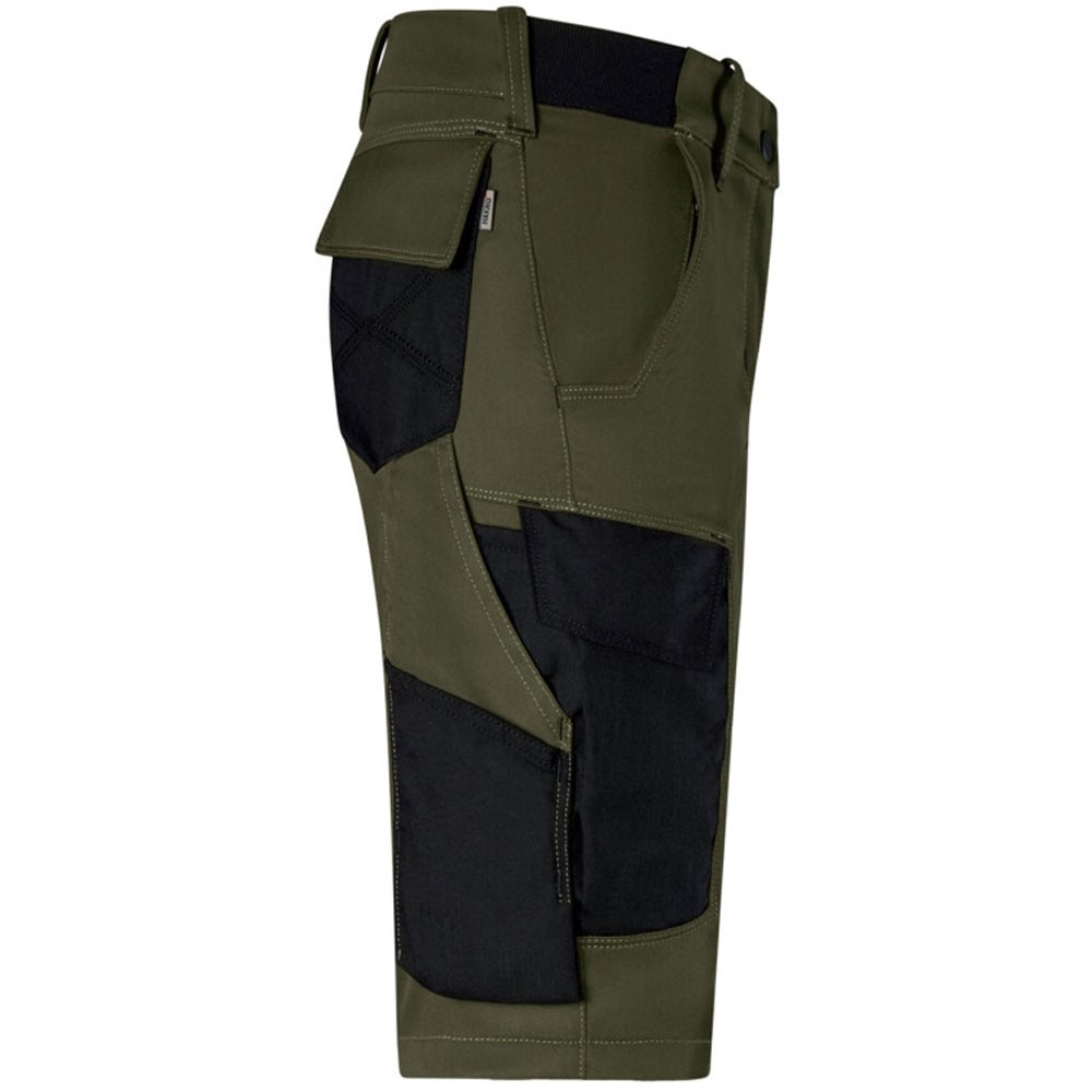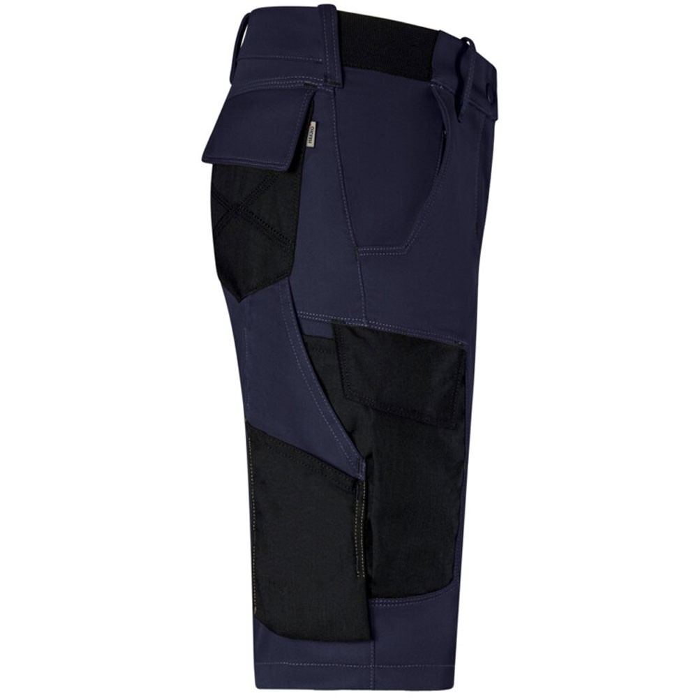 Extrem strapazierfähige und funktionelle Shorts mit dehnbarem Hosenbund durch robuste Strickeinsätze an den Seiten. Sicherheitsknopf, Reissverschluss, Gürtelschlaufen, eingenähte Reflexbänder und ergonomisch vorgeformte Passform. Zwei Einschubtaschen, rechts mit zusätzlicher Sicherheits-Reissverschlusstasche. Zwei Gesässtaschen mit Stickerei, rechts mit Patte und Klettverschluss. Zwei Cargotaschen mit multifunktionellen Unterteilungen, verschliessbar mit Patten und Reissverschlüssen. Aufgesetzte Zollstocktasche auf der rechten Seite. Alle aufgesetzten Taschen aus CORDURA® und alle Reissverschlüsse von YKK®. Besonders strapazierfähiger Materialmix aus Baumwolle, GRS-zertifiziertem, recyceltem Polyester und Elasthan.